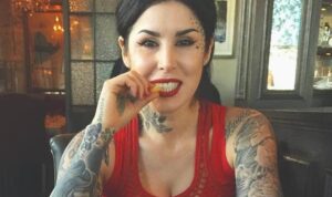 Kat Von D, the celebrity tattoo artist, television personality, and entrepreneur who rose to fame on LA Ink, has unveiled her most striking transformation yet. Known for her intricate, detailed designs and gothic-inspired style, Kat revealed to fans that she has now tattooed nearly 80 percent of her body in solid black ink — a bold choice that has left many stunned, curious, and deeply divided.